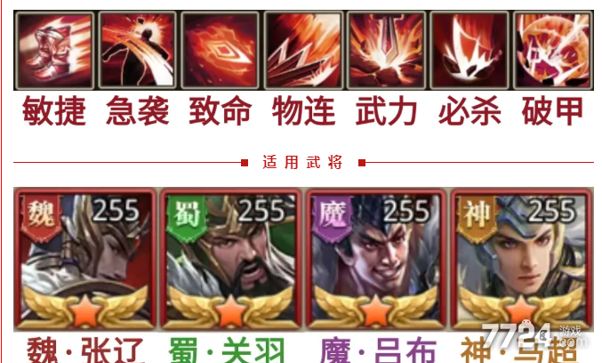 所以极限流适合技能基础伤害高的武将,比如上面几位靓仔。这套带法的重点在于急袭,前2回合能增加伤害,但如果前2回合没结束战斗,就等于少带一个兵法。